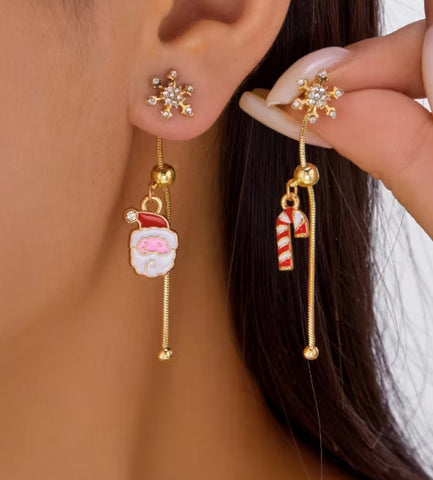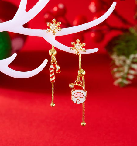 Type: 3D Christmas with rhinestones, enamel charms Asymmetric, drop earrings. Gold colour. Note these are not flat.